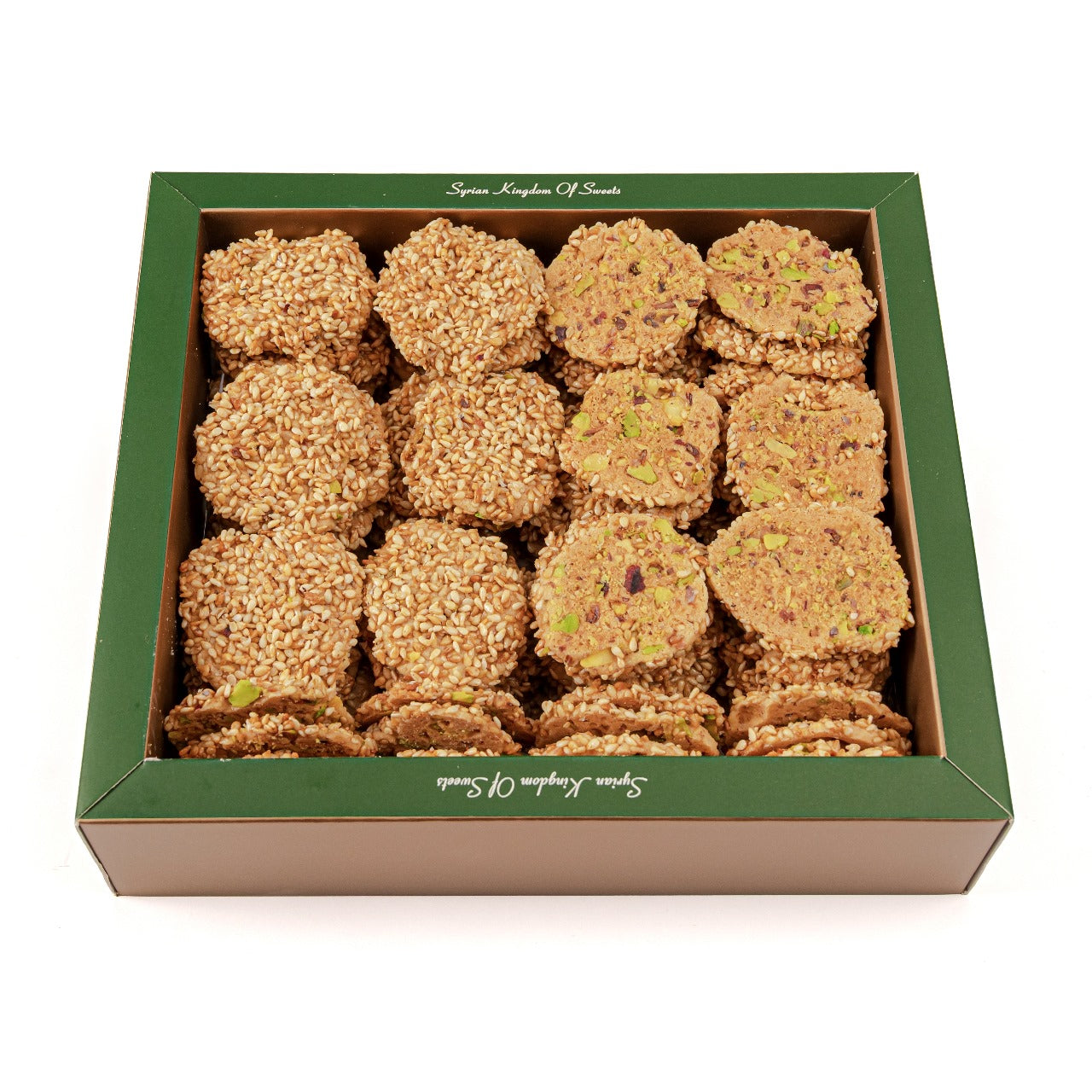 يُحضَّر من مكونات طبيعية مختارة بعناية: دقيق فاخر، سمن بلدي نقي، كاكاو ناعم عالي الجودة، ولمسة حبّ تُخبَز في كل قطعة.