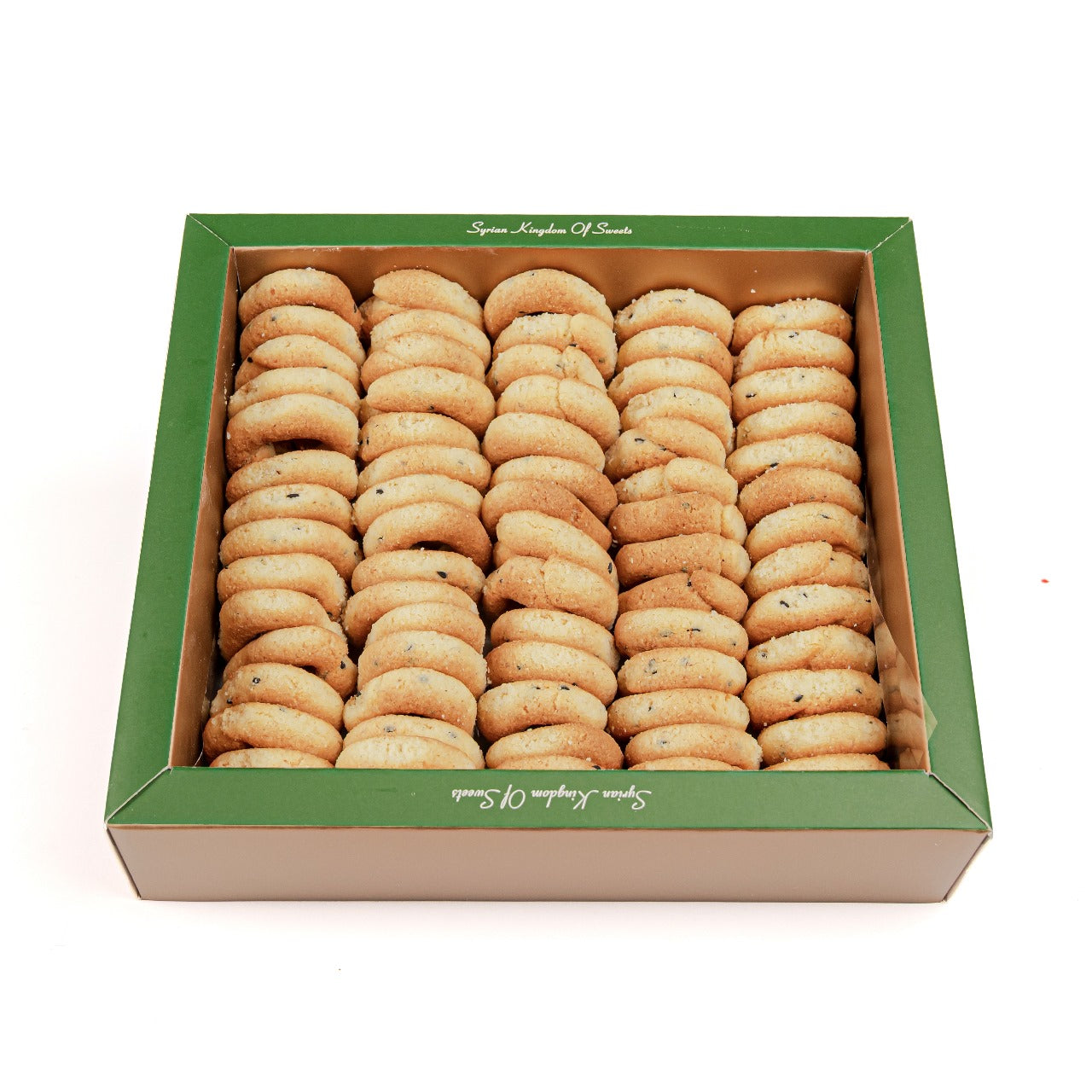 تُشكَّل القطع يدويًا بقوالب مزخرفة، فنٌّ بحد ذاته، وتحفة بصرية تليق بسحر الطعم، ثم تُخبز بهدوء حتى تكتسي بلونٍ ذهبيٍّ فاخر، وتُقدَّم مزينة برشة من السكر الناعم، كأنها مكلّلة بالثلج الشرقي.