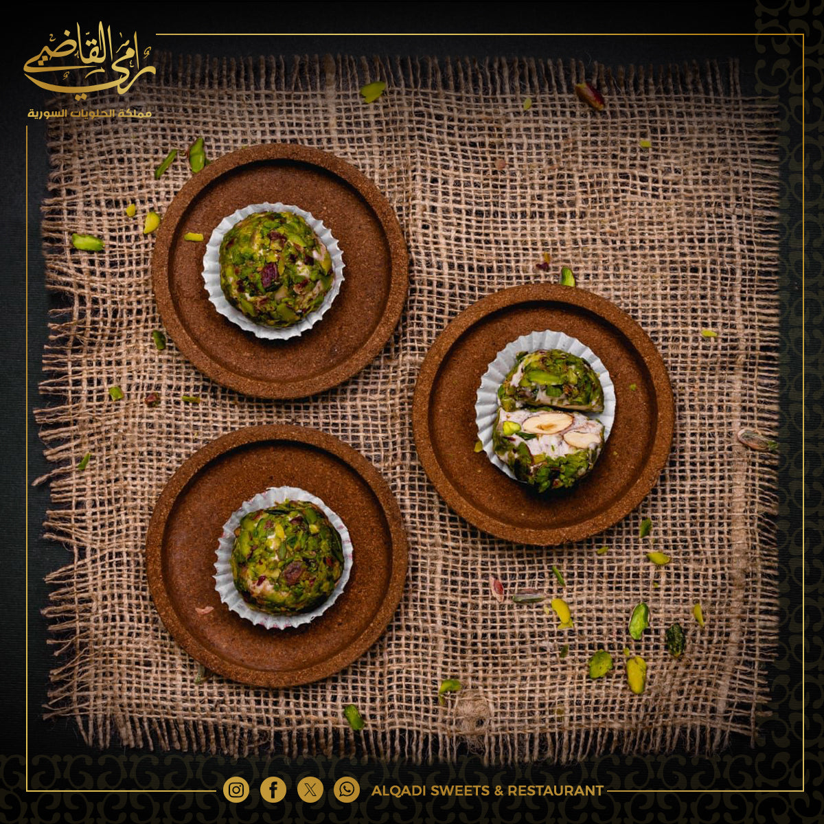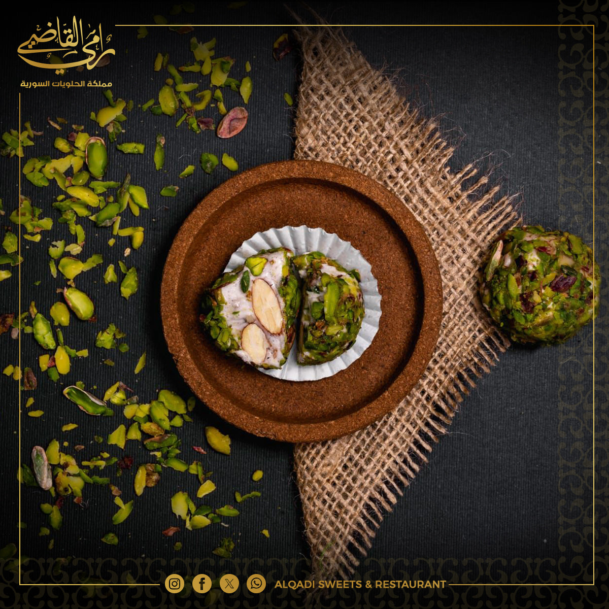 مصنوعة من مزيج فاخر من السكر والبيض والمستكة والفانيليا النقية، تُخفق وتُطهى بعناية حتى تكتسب قوامًا ناعمًا كالسحاب، وتُحشى أحيانًا أو تُزيَّن بأجود أنواع الفستق الحلبي أو اللوز، لتمنحك توازنًا ساحرًا بين النعومة والقرمشة.